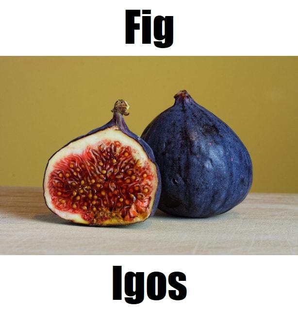 Fig in Tagalog is ‘igos.’ This educational fruit‑vocabulary image helps learners recognize igos and other Filipino fruit names, supporting simple and fun Tagalog language learning.