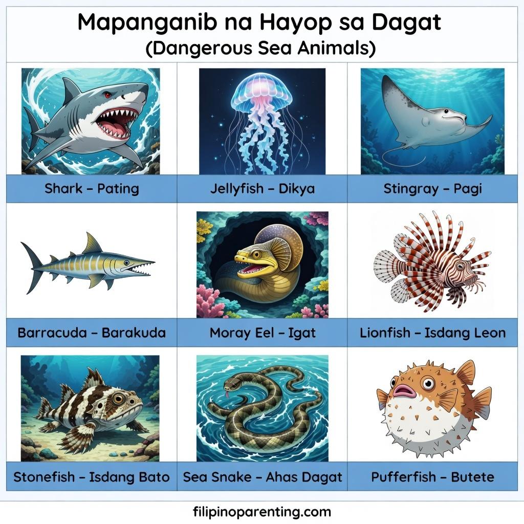 These are some of the most commonly known sea animals in Tagalog and are often mentioned in travel, education, and marine conservation topics.